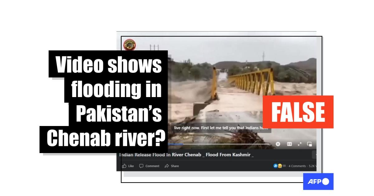 The video, viewed more than 5,400 times, has Urdu text superimposed which says that India released 300,000 cusecs (cubic feet per second) of water into the Chenab river flowing through Pakistan-controlled Kashmir after ten hours of heavy rain.