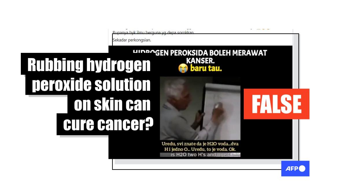 Elise Bonvin, a molecular biology and oncology researcher in Brussels, also told AFP that "although H2O2 has been used for keratose (not cancer), it is not proven by the scientific [evidence] to my knowledge that H2O2 could be a therapy for cancer."