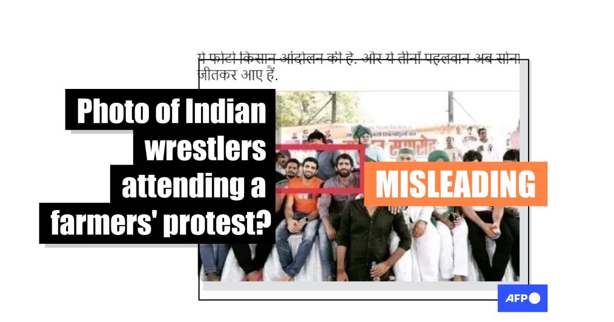 The images used by the Haryana Express appear to have been taken from a slightly different angle, but the three wrestlers are pictured wearing the same clothes that they are wearing in the photo used in the misleading posts.