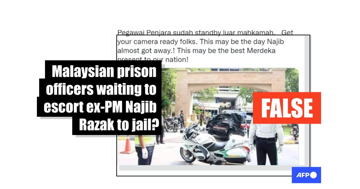 Local newspaper Harian Metro has also debunked the claim the photo shows prison officers waiting for Najib outside court here.