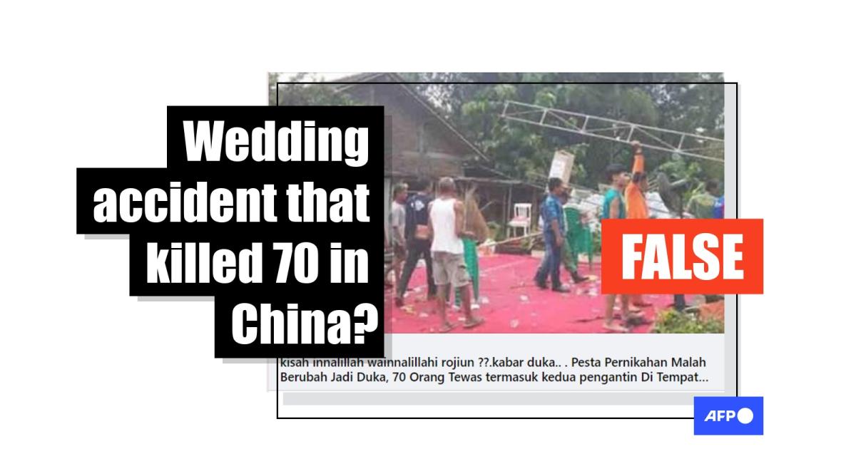 AFP previously debunked a similar false claim about the deadly wedding in Longyan, which used a picture of a collapsed wedding tent in Indonesia's North Sulawesi province.
