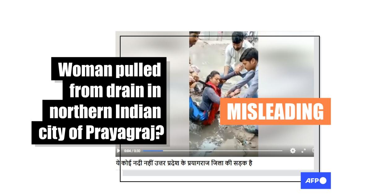 Footage of woman rescued from drain filmed in Indian capital Delhi, not Prayagraj