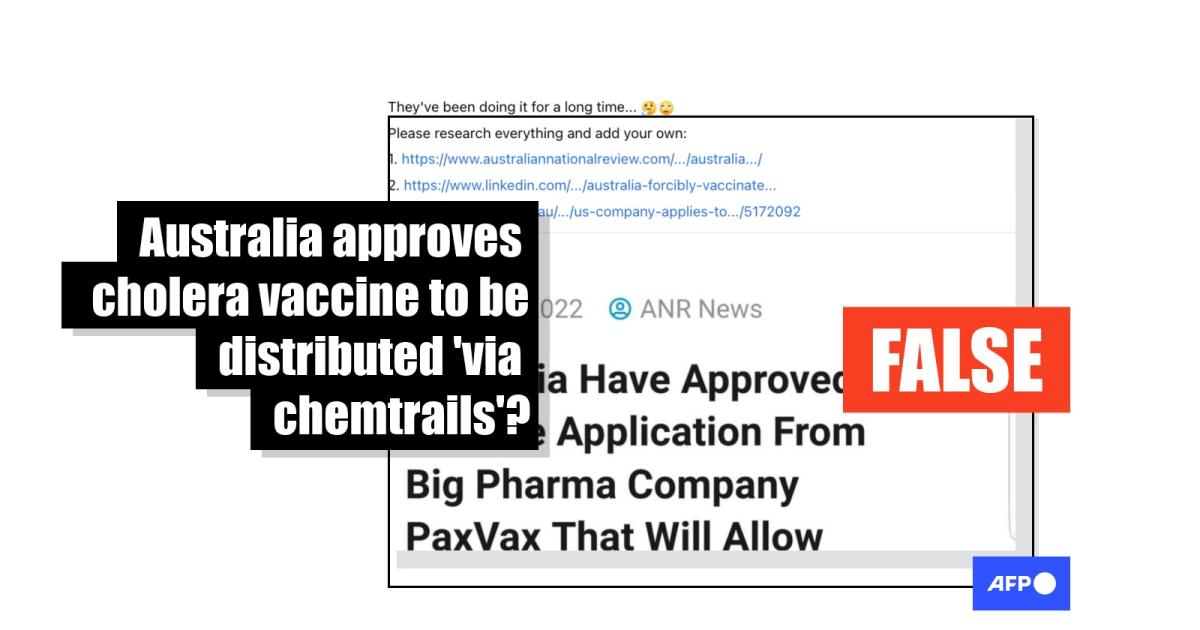 Australian authorities are not set to release cholera vaccine 'via chemtrails' over Queensland
