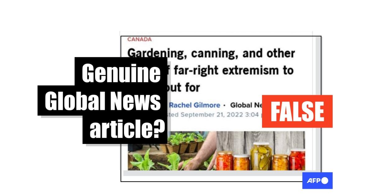 "Gardening, canning and other signs of far-right extremism to watch out for," says the headline in an image of a supposed article from Canada's Global News, posted September 24, 2022 on Instagram.