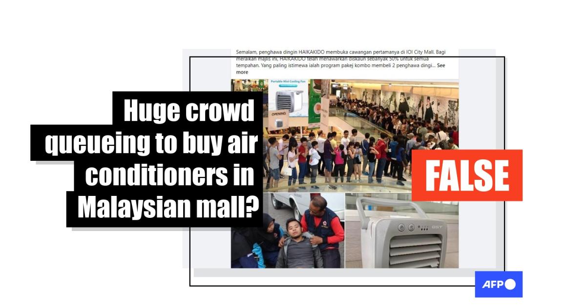 Posts share false claim about crowds flocking to buy air conditioners at Malaysian shopping centre