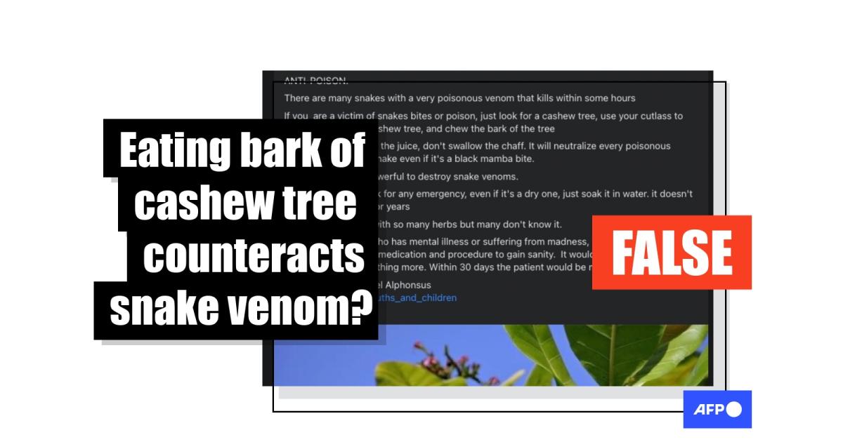 But the claim that chewing the bark of cashew trees cures snake bites is false.