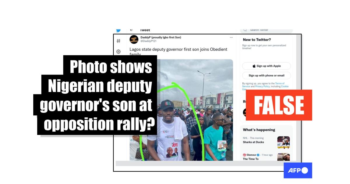 Tweet falsely claims photo shows Lagos state deputy governor's son joining opposition rally