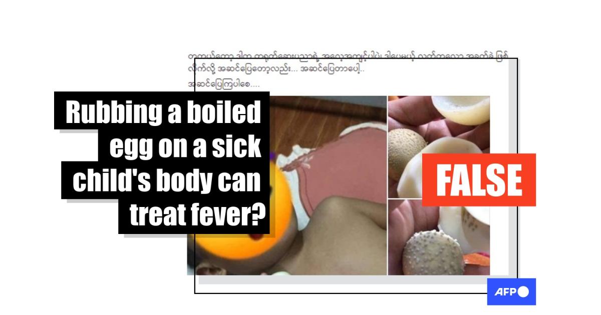 However, medical experts and Chinese medicine practitioners told AFP that there is no evidence that a boiled egg can cure or relieve a child's fever, and there is no link between this treatment and Chinese medicine.