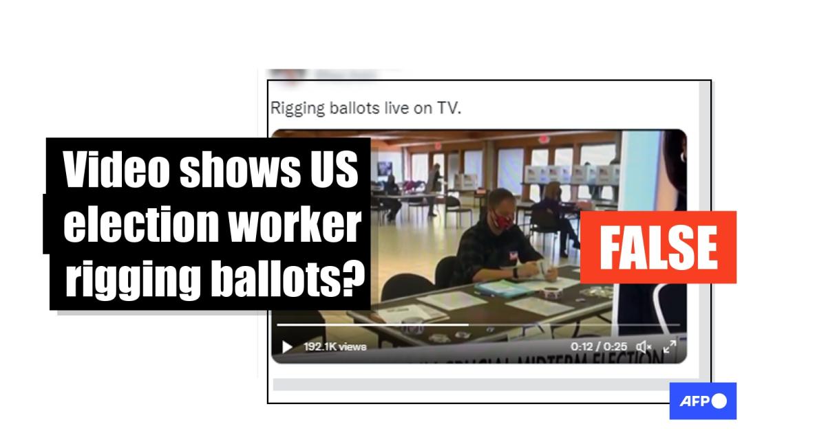 "That video clip shows a poll worker initialing and indicating the ward number on the back of the ballot," McDonell said in an email to AFP. "A second poll worker will add their initials to each ballot just before handing the ballot to a voter."