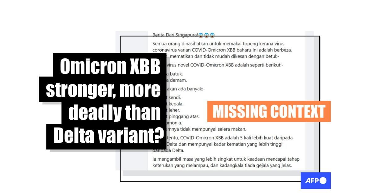 Facebook users from different countries, such as Malaysia, Singapore, the Philippines, Myanmar, India and the United States, also share similar posts in English, claiming that the XBB variant is "5 times more toxic" and "has a higher mortality rate" than the Delta variant.