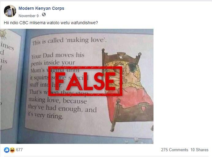 “Is this the CBC you wanted your children to learn?” reads the Swahili caption, referring to the Competency-Based Curriculum launched by Kenya in 2017.