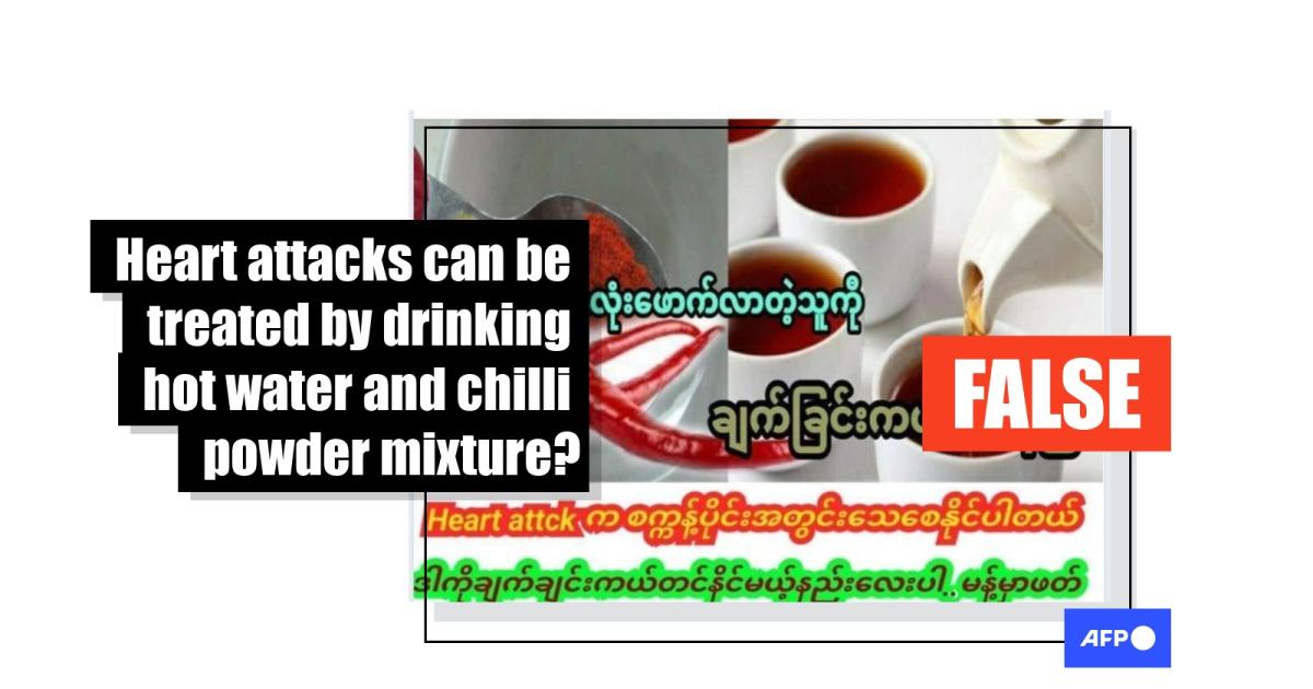 Burmese posts falsely claim hot water with chilli powder mixture can treat heart attacks