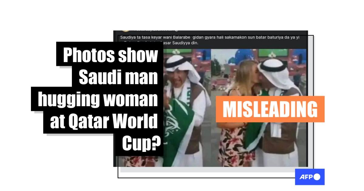 But the claim that the photos show a Saudi fan embracing a woman after the historic victory is misleading.