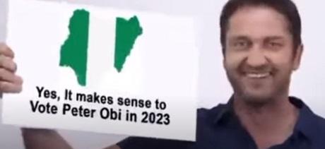 The 49-second clip shows a succession of popular Hollywood celebrities holding up whiteboards purportedly reading “Yes, it makes sense to vote Peter Obi in 2023”.