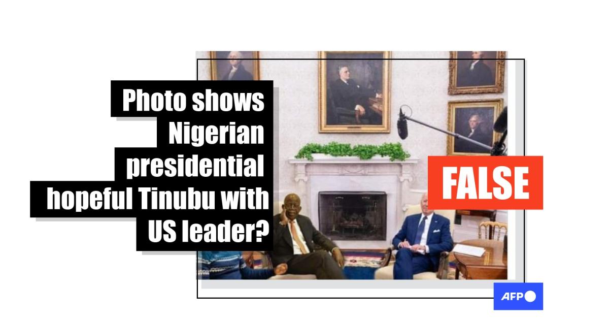 A post with a photo circulating on Nigerian social media claims to show the Nigerian ruling party’s presidential candidate Bola Tinubu with US leader Joe Biden in the Oval Office. But this is false: AFP Fact Check found that the photo is a doctored version from a White House visit by Iraqi Prime Minister Mustafa Al-Kadhimi. Tinubu does not feature in the original picture.