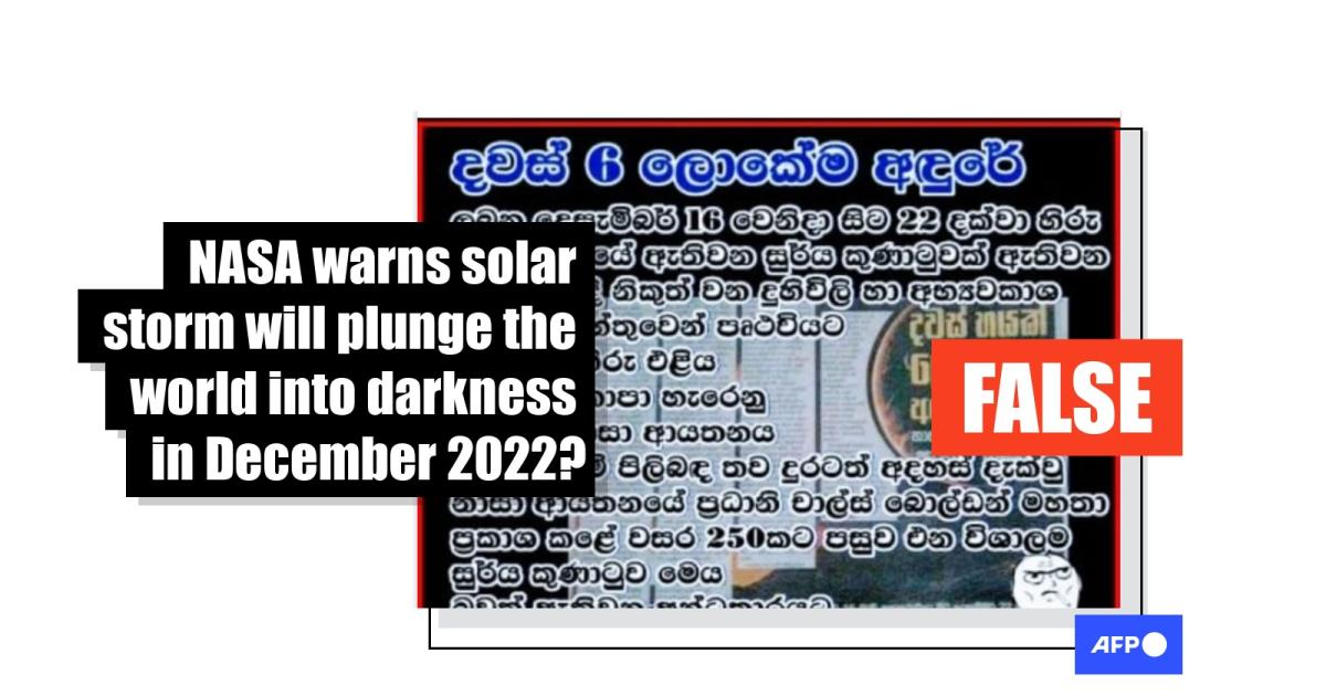 Purported NASA warning about 'world being plunged into darkness' is old hoax