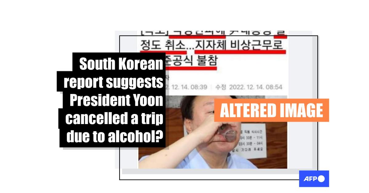 It published the original report about the cancellation of Yoon's trip on December 14 with the same headline and byline -- for journalist Park Joon-hee -- as the screenshot circulating on Facebook.
