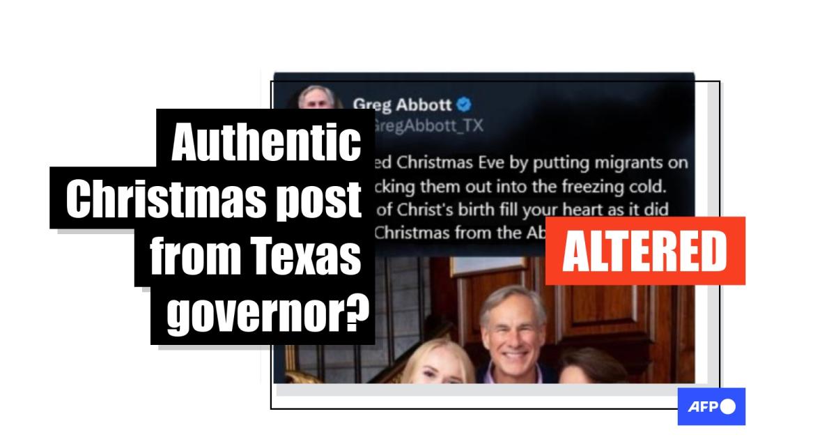 Posts sharing the supposed message -- which features a photo of Abbott with his wife and daughter -- popped up across platforms, including Facebook, Instagram and Twitter. One December 26, 2022 tweet from American actress and singer Bette Midler received more than 7.7 million views.
