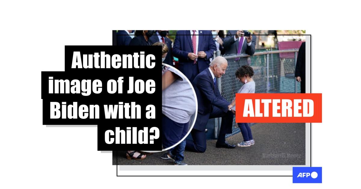 But the photo has been altered to change the position of Biden's hands. A White House spokesperson confirmed to AFP that the version circulating online is "not real."