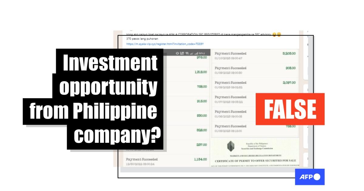 She shared a statement with AFP that the company posted on Facebook which said Ayala Corporation did not have "an app or a website dedicated for investments".