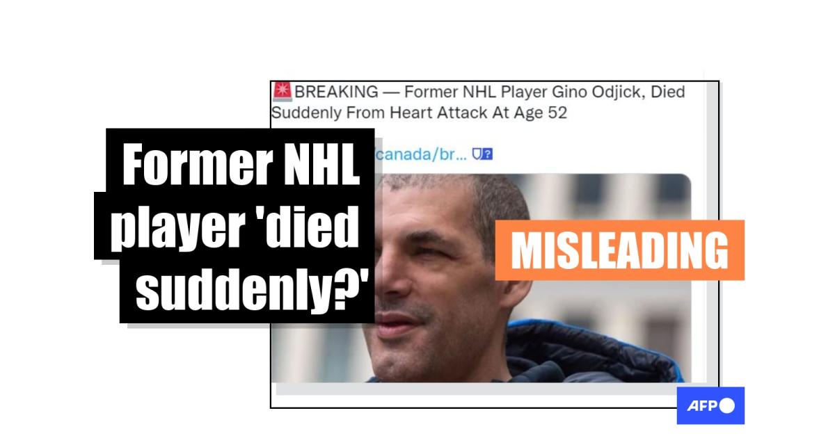 "BREAKING — Former NHL Player Gino Odjick, Died Suddenly From Heart Attack At Age 52," says a January 16, 2023 tweet from James Cintolo, a Boston-based nurse who writes about supposed adverse events following Covid-19 vaccination.