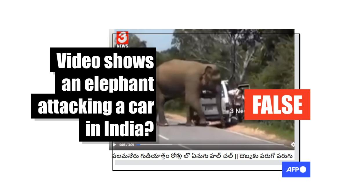 The claim was shared alongside a video of an elephant shoving a white vehicle with its trunk before rummaging inside. Some of the vehicle's passengers can be seen escaping the car, but at least two later return to it and drive away after the elephant leaves.