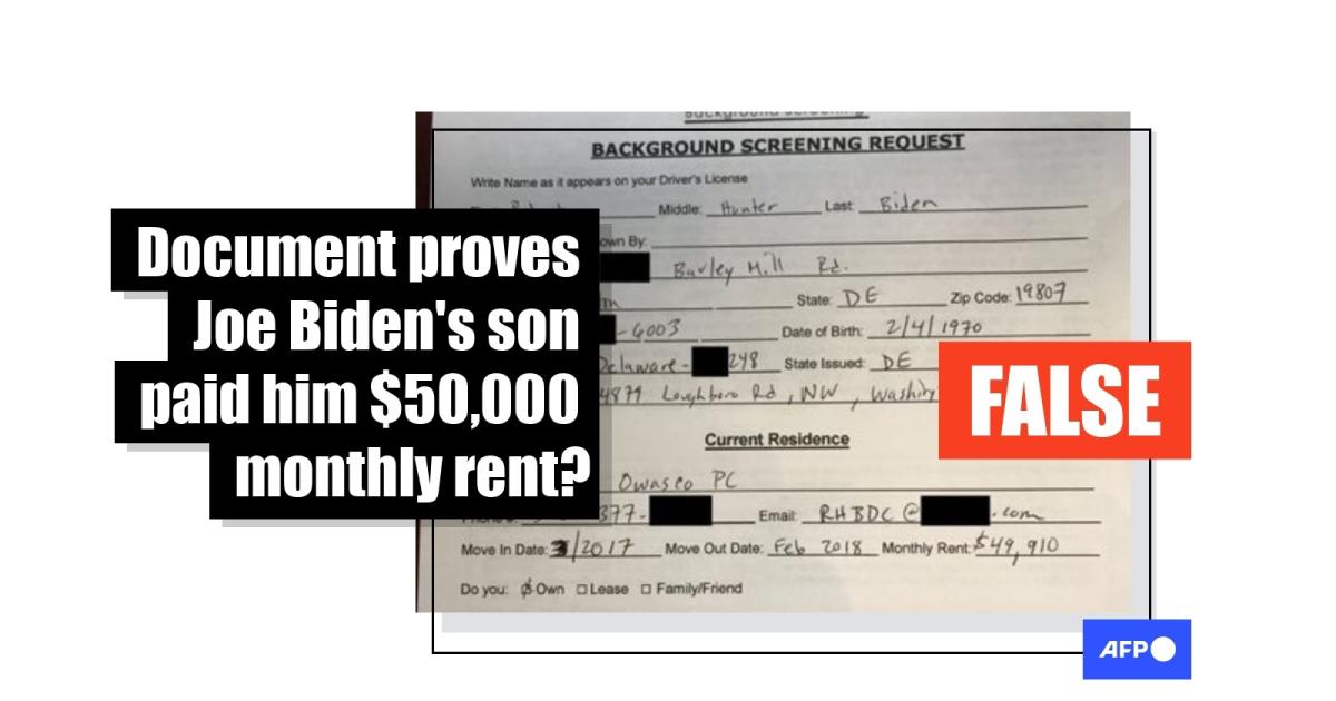 But the document shared online does not show Hunter Biden paid his father to stay at their Delaware home. The $49,910 listed under "monthly rent" matches quarterly payments he made to the House of Sweden in Washington DC, which -- in addition to housing the Swedish and Icelandic embassies -- provides office space.
