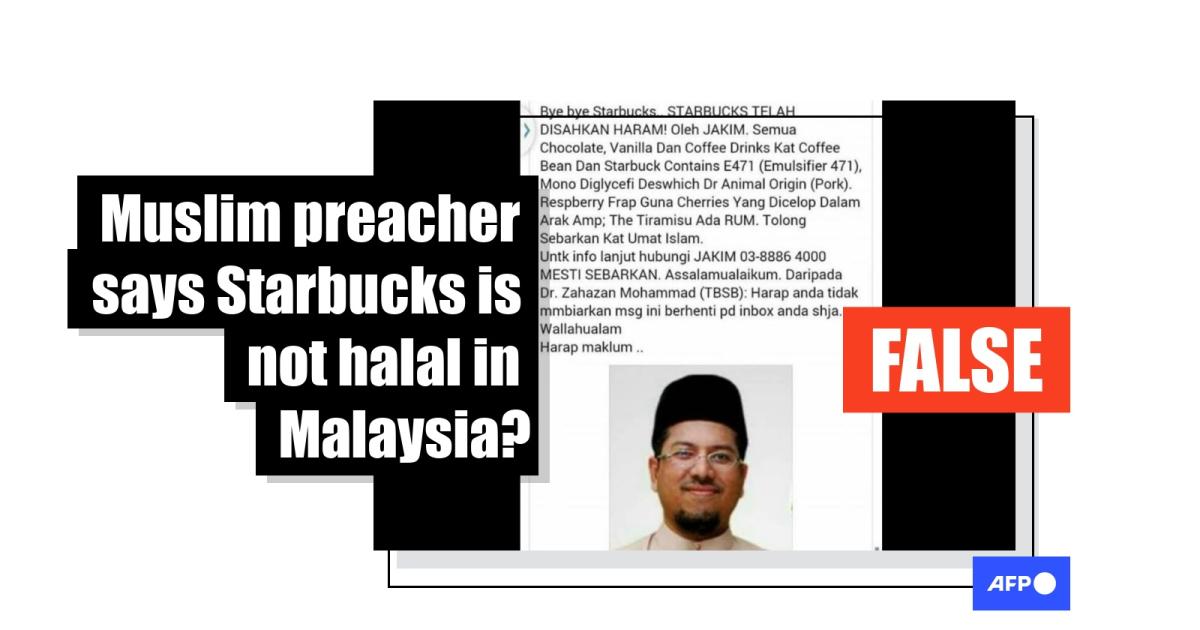 "A viral claim regarding a religious preacher declaring Starbucks as haram is haunting the cyber world again. This is a recycled issue which we have addressed on May 10, 2016 ... Starbucks holds the Malaysian Halal certificate and is still valid."