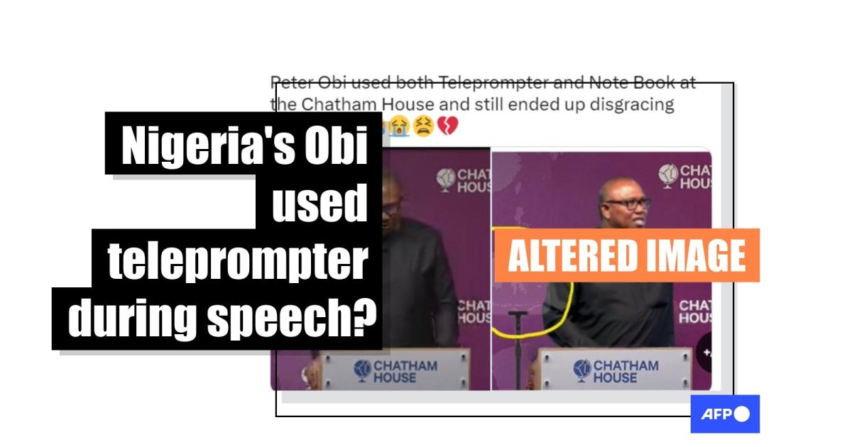 Using a keyword search for “Peter Obi Chatham House speech”, AFP Fact Check found footage of his speech showing there was no teleprompter on either side of the podium.