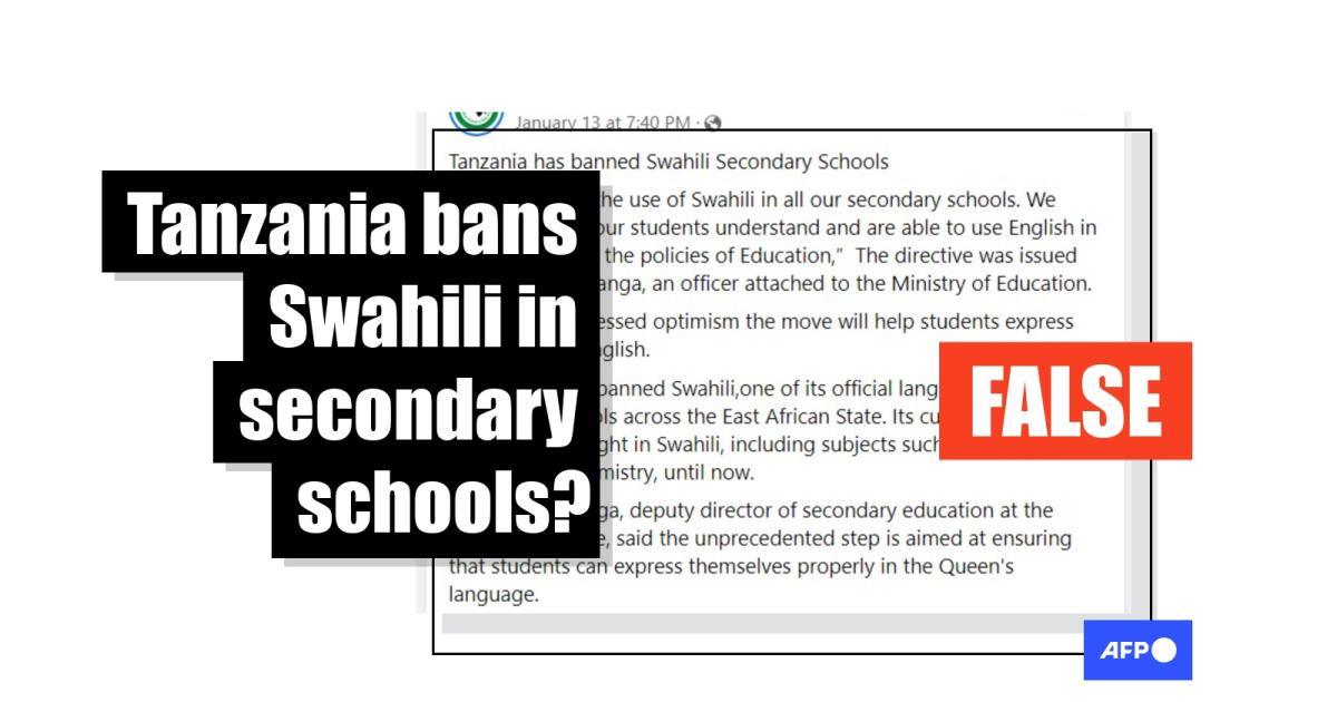 “Tanzania has banned Swahili Secondary Schools (sic),” reads the post published on Facebook on January 13, 2022.