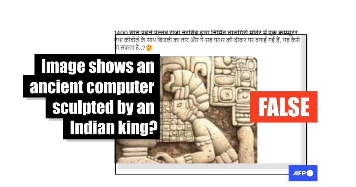 "Lalgiri temple -- built by Pallava king Narasimha 1400 years ago -- has a computer and keyboard along with electric wire and all these made on a stone wall," reads part of the Hindi-language claim, shared more than 100 times here on Facebook on January 25, 2023.