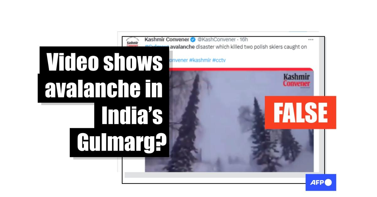 A video of an avalanche has been viewed thousands of times in posts that falsely claim it shows an accident in the Indian ski resort of Gulmarg in which two Polish tourists died after being trapped by snow on February 1, 2023. The video -- which features two skiers speaking Russian -- has circulated in reports since December 2022 about an avalanche in Russia’s Sheregesh resort.