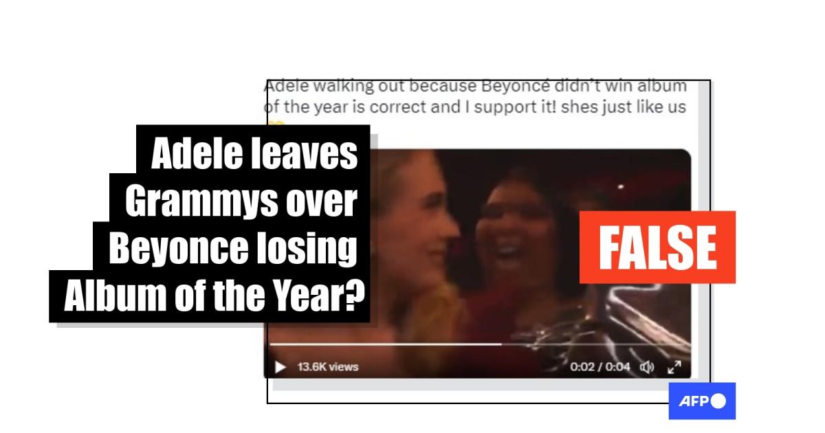 But the claims are false -- while some Grammys attendees voiced their discontent over Beyonce losing Album of the Year, Adele did not walk out of the ceremony.