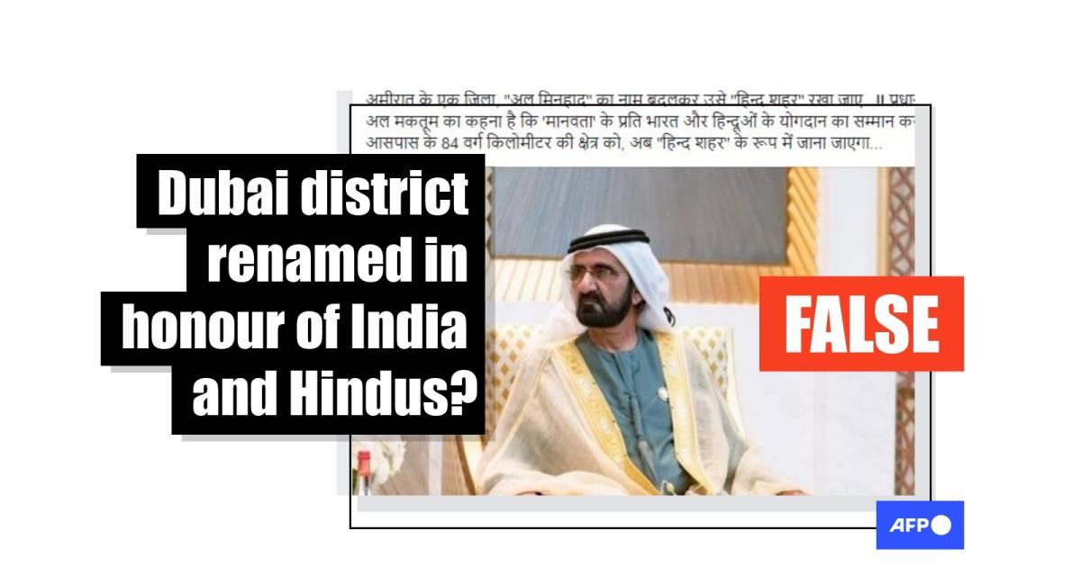 "Sheikh Mohammed bin Rashid Al Maktoum, ruler of Dubai and prime minister of the United Arab Emirates, has ordered that a district in the emirate, 'Al Minhad', be renamed 'Hind City'," reads a Hindi-language Facebook post shared on January 30.