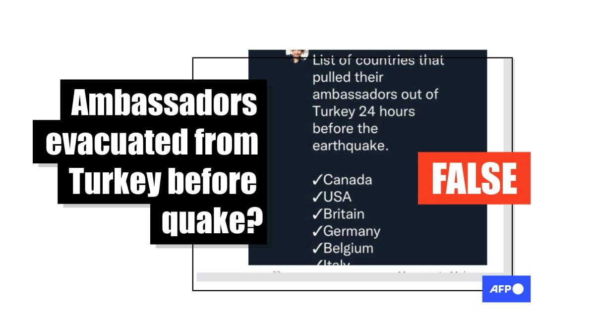 Baseless claim Turkey ambassadors 'evacuated' before earthquake fuels conspiracy theories