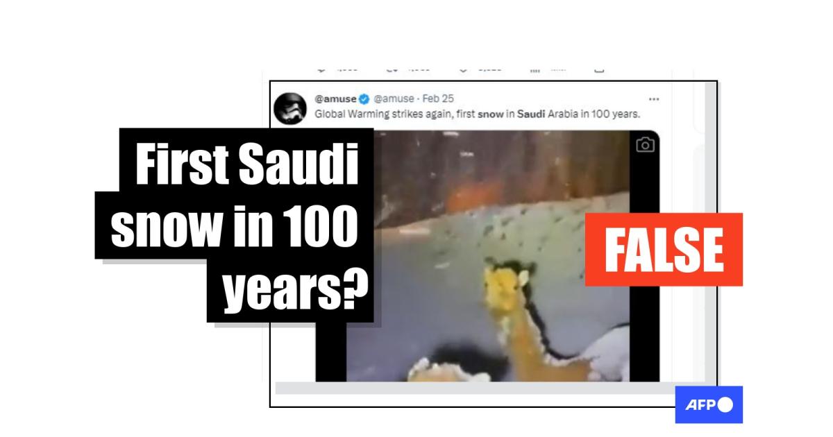 "Global Warming strikes again, first snow in Saudi Arabia in 100 years," says a February 25, 2023 tweet sharing a clip with some four million views.