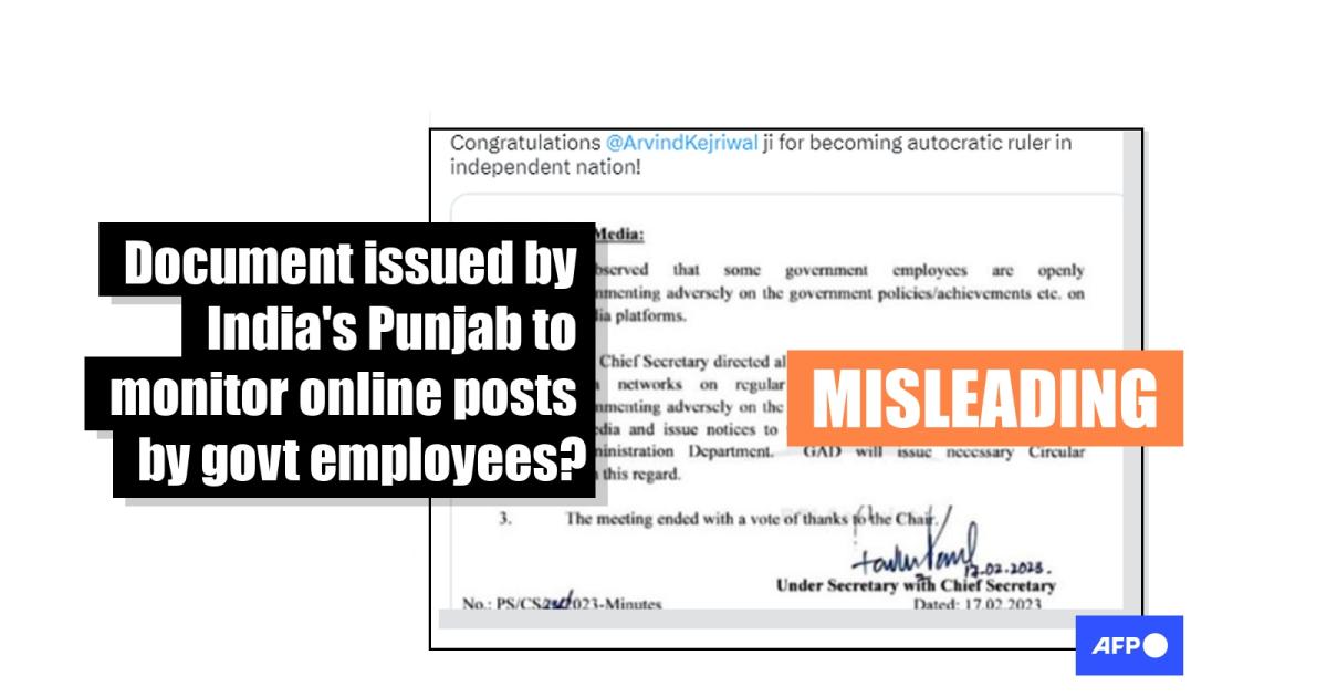 Posts misleadingly link order to monitor govt employees' social media to India's Punjab