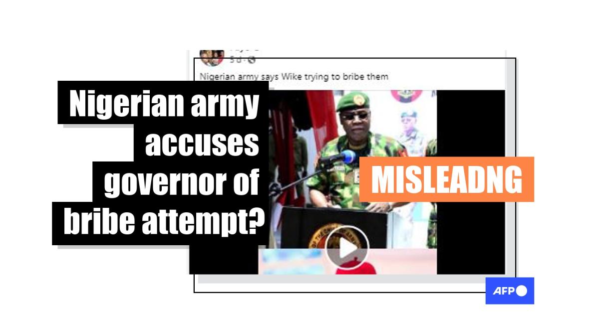 A video is circulating on social media in Nigeria with claims that it shows the Nigerian army accusing Nyesom Wike, the governor of Rivers state in the country’s south, of trying to bribe military personnel, implying that this took place amid the 2023 general elections. But the claim is misleading: the video is unrelated to the recent elections. It was filmed in 2019 and shows the spokesman for the army’s 6th Division accusing Wike of attempted bribery during that year’s election in Rivers state.