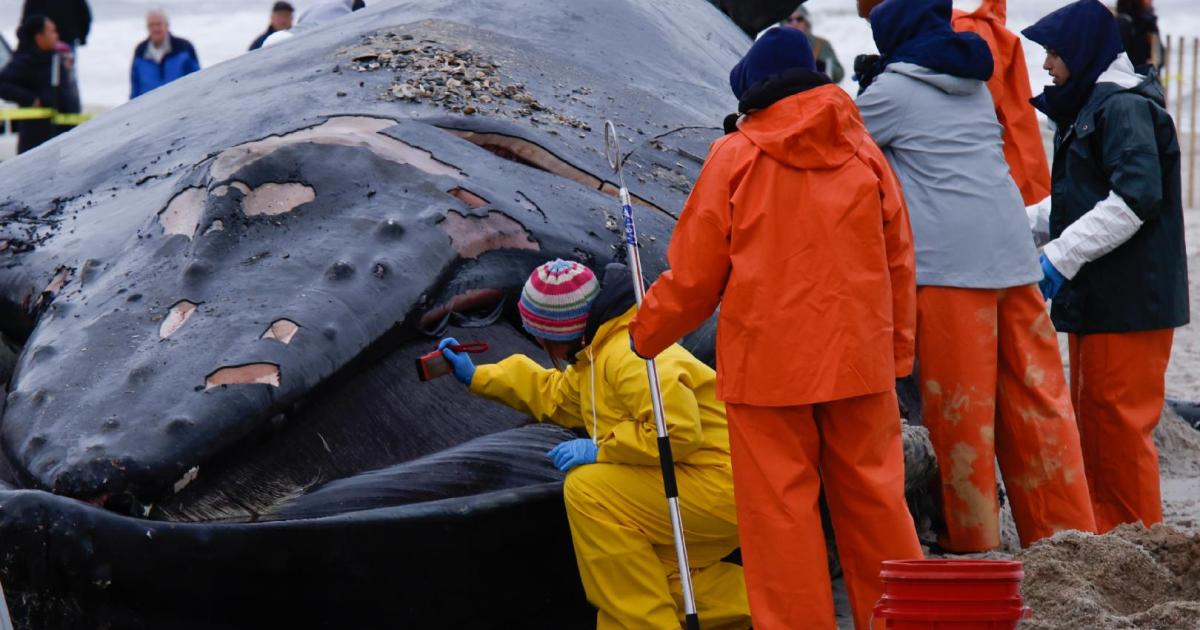 In February 2023, for example, a right whale washed up in Virginia Beach. Multiple agencies performed a necropsy and found the whale "suffered a catastrophic blunt force traumatic injury," according to WDC, with injuries "consistent with vessel strike."