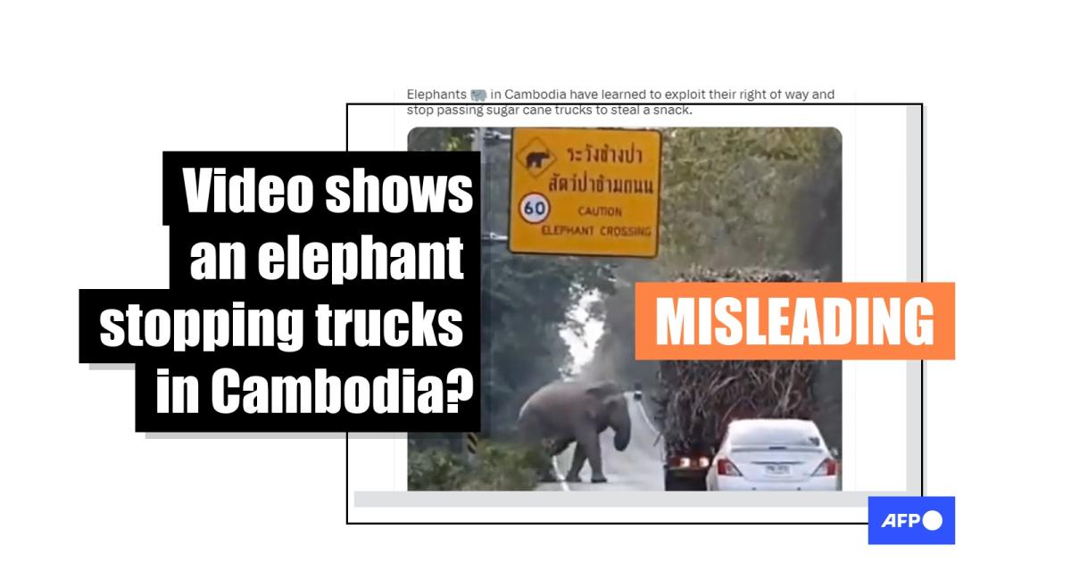 "Elephants in Cambodia have learned to exploit their right of way and stop passing sugar cane trucks to steal a snack. 0.5% road tax being collected by these intelligent beings," reads the misleading claim shared on Twitter on March 6.