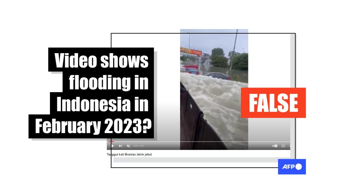 The clip circulated days after heavy rains caused floods in four villages in Gresik regency, in Indonesia's East Java province, on February 21, 2023.