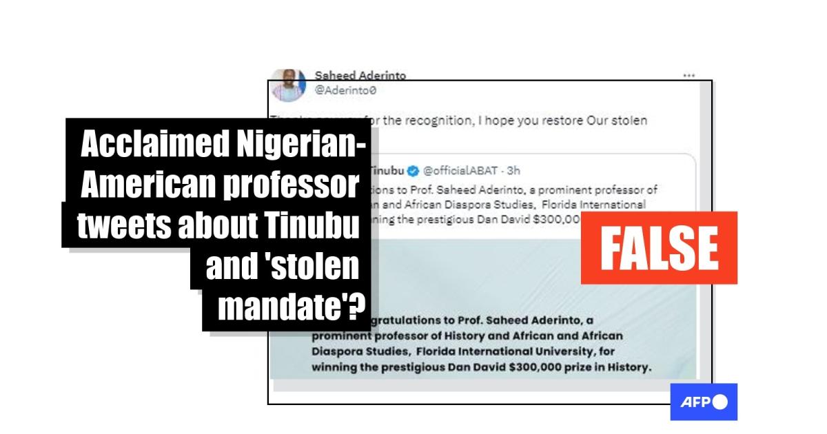 But the claim that Aderinto requested Tinubu to return the “stolen mandate” -- in a reference to the February elections – is false.