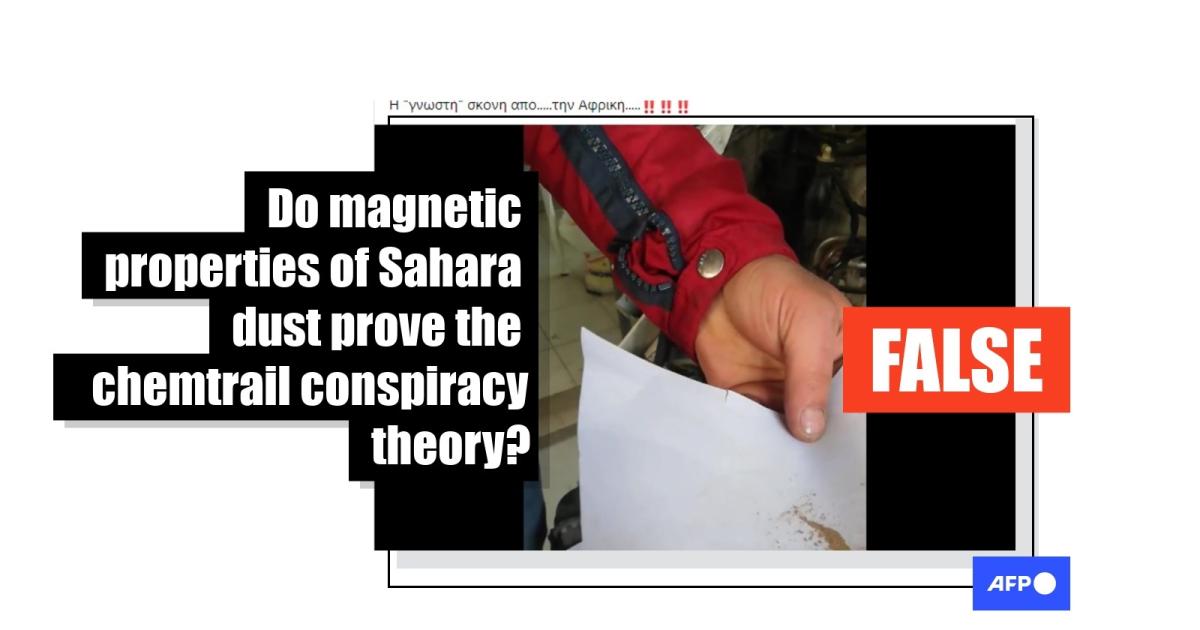 AFP spoke to experts in the fields of mineralogy and mineral chemistry who explained that the magnetic properties of African dust are completely natural and have their origins in the characteristics of the landscape of northern Africa. The chemtrail conspiracy has never been proven, with leading scientific institutes considering it to be baseless.