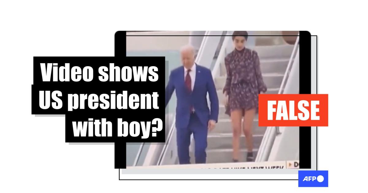The video misrepresented online is a snippet from a March 15, 2023 episode of a Fox Business Network television program that aired footage of Biden's arrival. AFP found the segment, which shows Natalie Biden more clearly as she walks down the ramp, by searching the Internet Archive's TV News Archive.