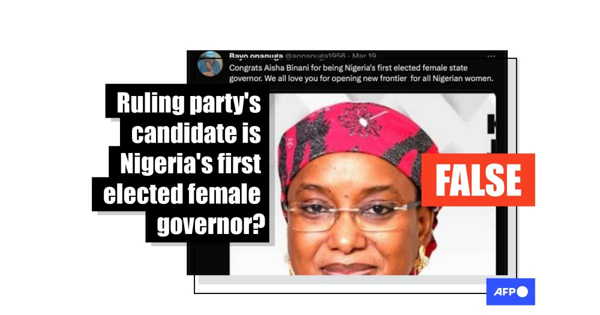 A spokesman for Nigeria’s ruling party falsely claims state elected first female governor