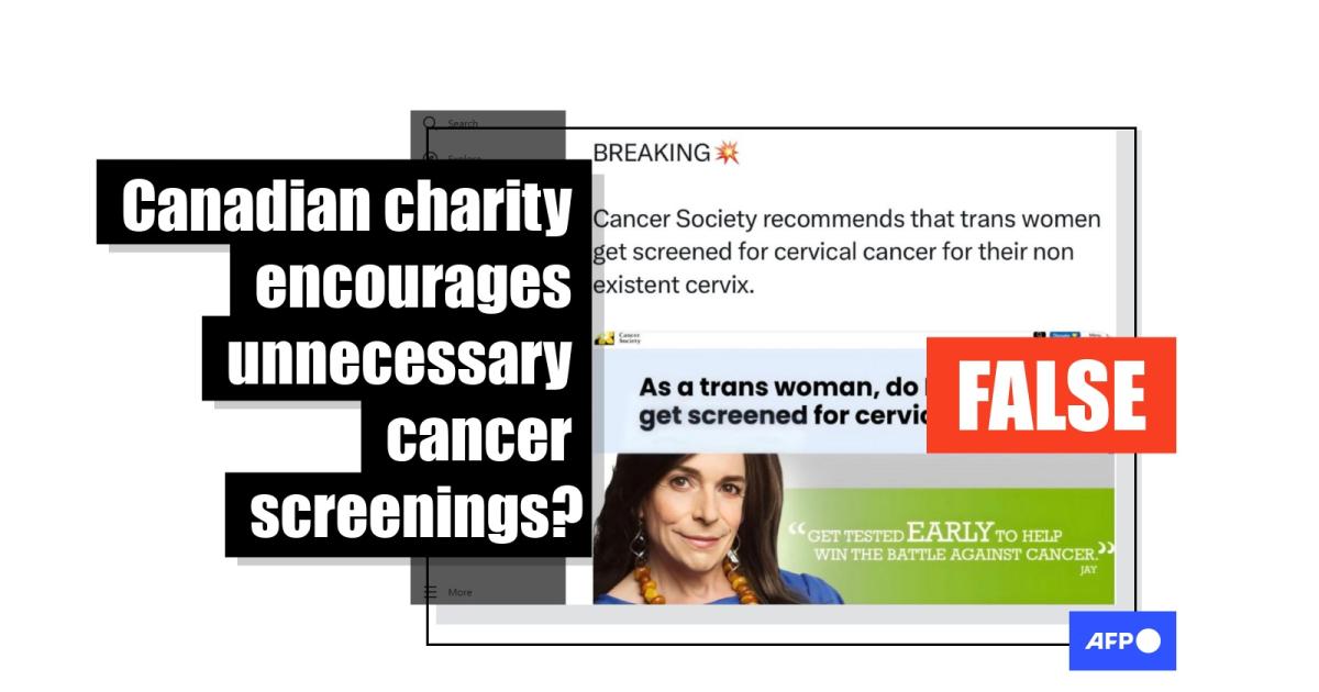 "BREAKING: Cancer society recommends that trans women get screened for cervical cancer for their non existent cervix," says a March 15, 2023 tweet sharing an article from a "feminist news and opinion website."