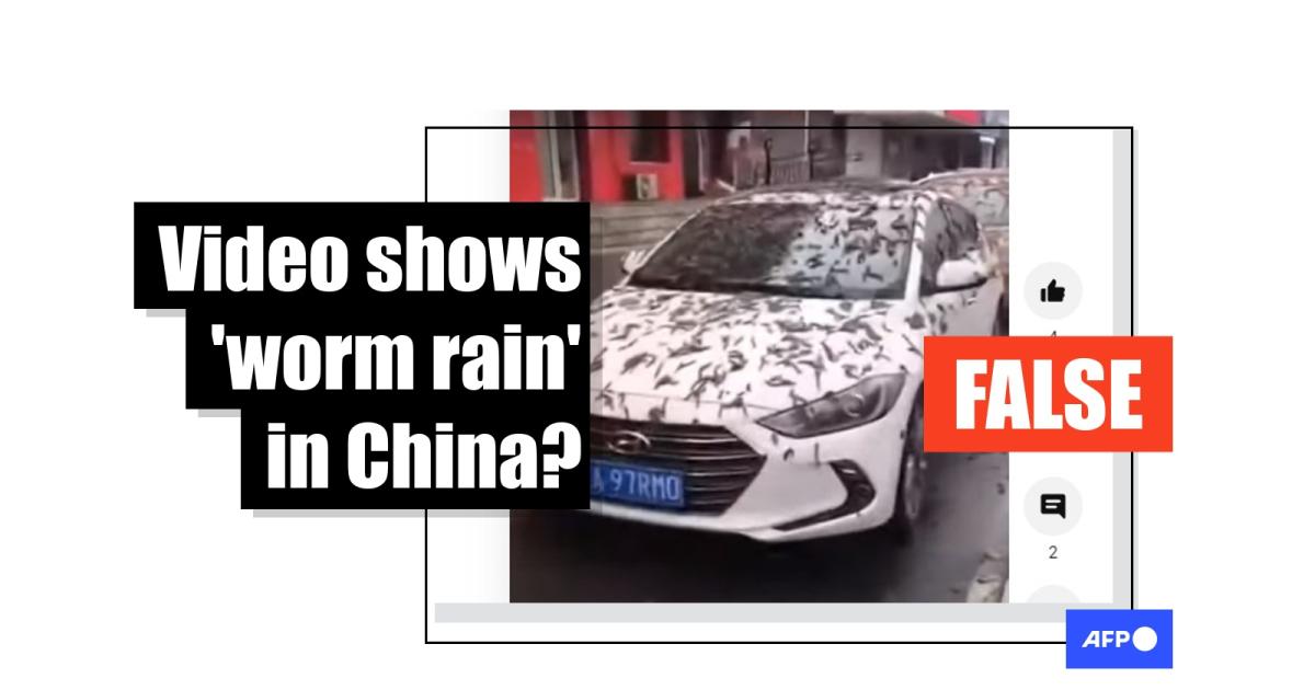 "Magical phenomenon of worm rain, China sees worm rain," reads the caption in traditional Chinese characters to a YouTube clip published on March 11, 2023.
