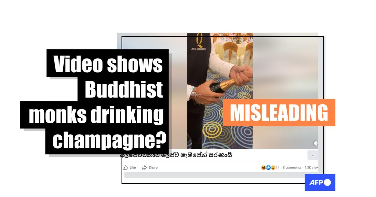 Clip shows Buddhist monks in Sri Lanka being served non-alcoholic drink, not champagne