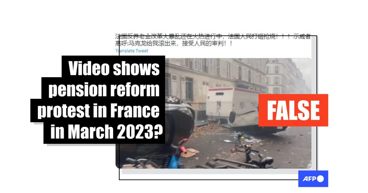 "The anti-pension reform riots in France are still raging," reads a simplified Chinese tweet that shared the video on March 23, attracting more than 53,000 views.