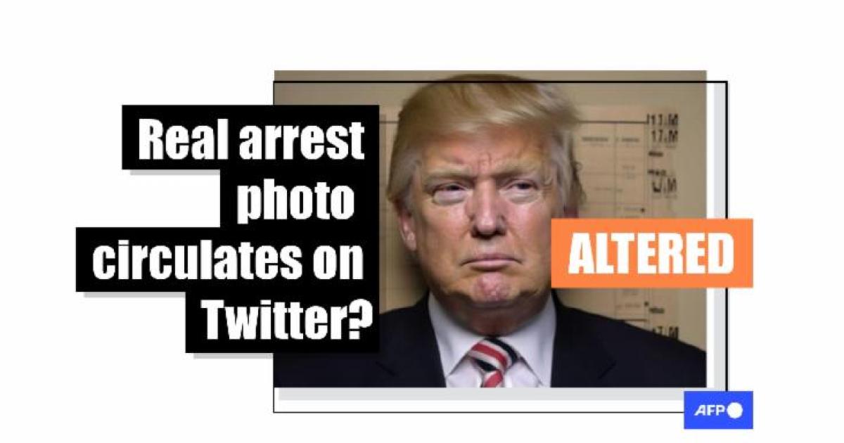 AFP used a reverse image search and found a real White House portrait of the former president, which was then altered to make it appear like a mugshot with the sign: "PRESIDENT DONALD J TRUMP 45-47 04 04 2023" with the words "NOT GUILTY" written below.